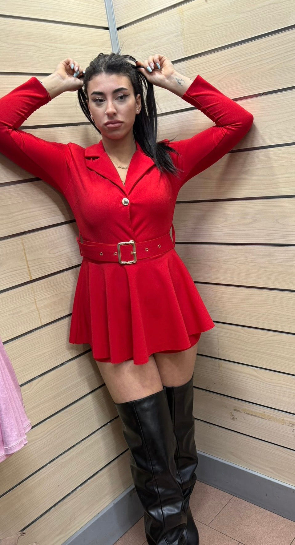 Mini Abito Blazer Rosso con Cintura