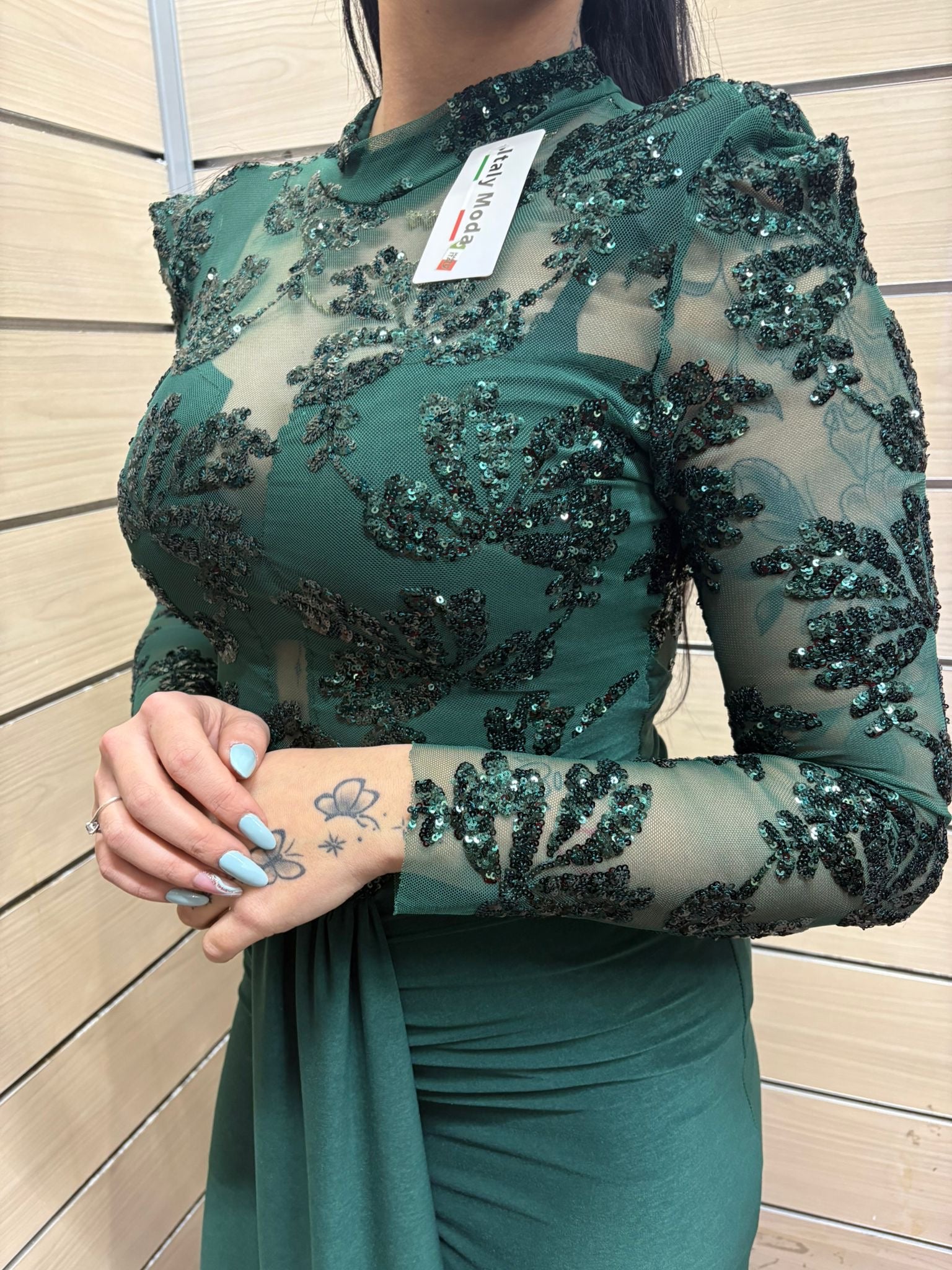 Abito da Gran Gala "Emerald Glow" con Sequin & Drappeggi