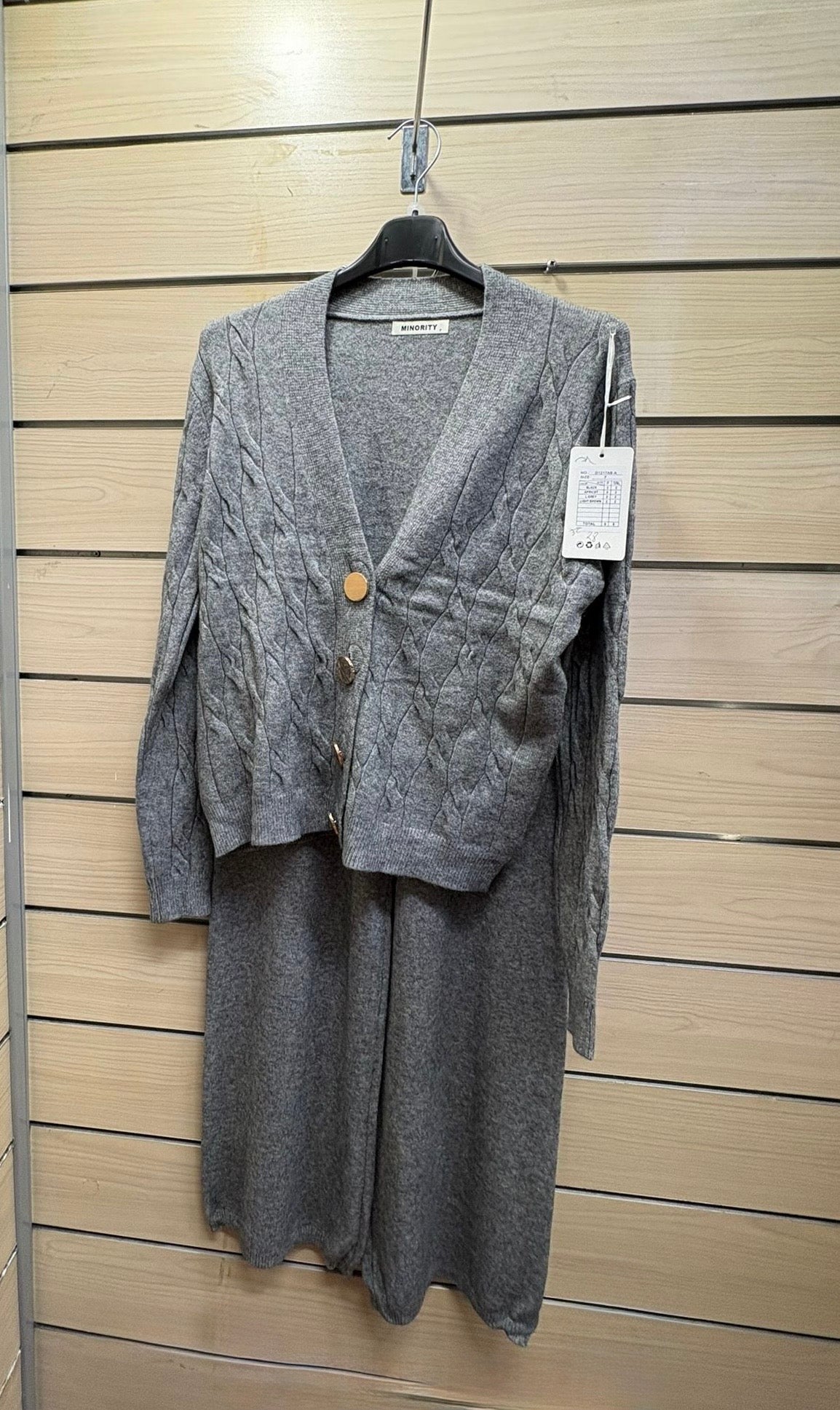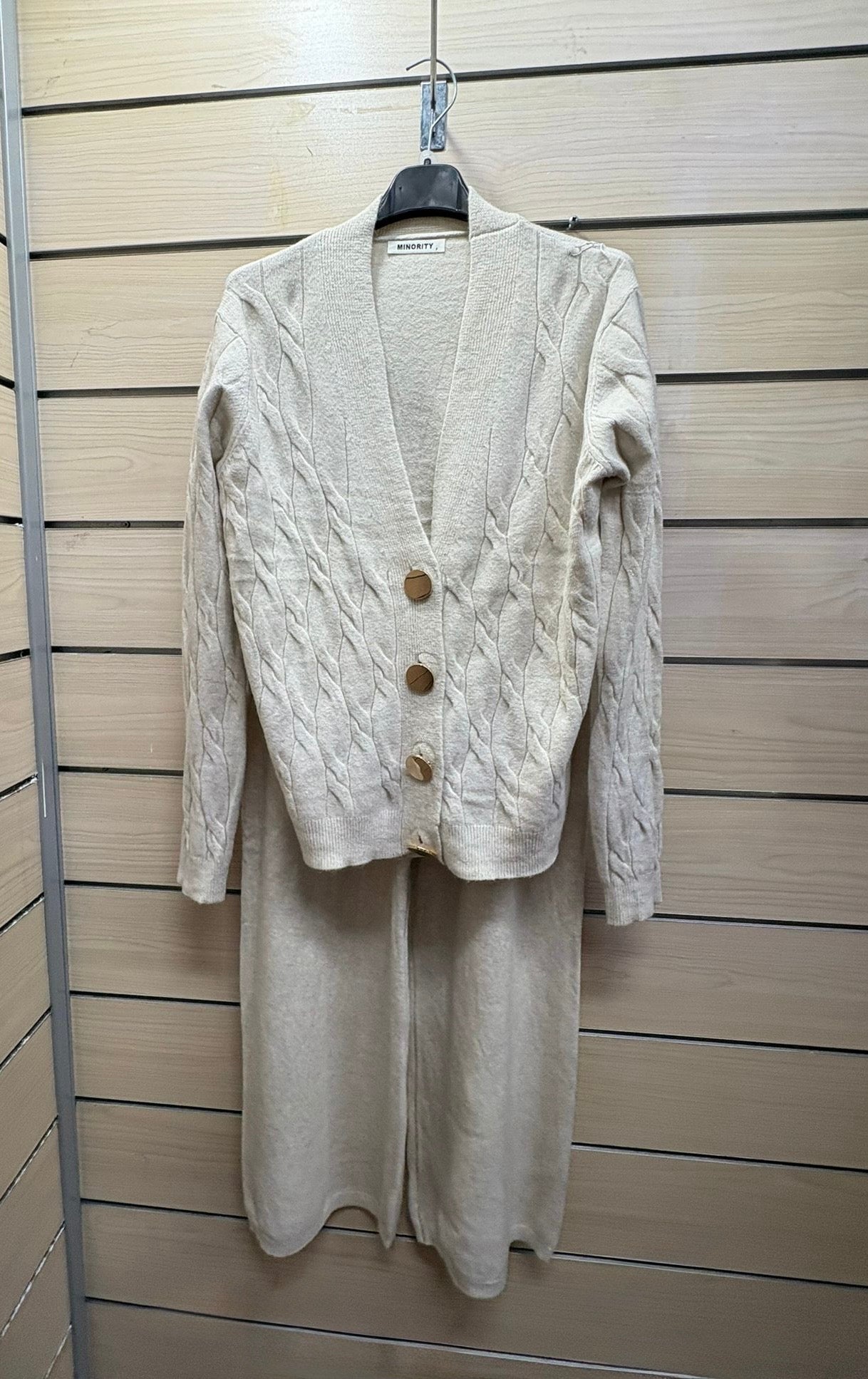Coordinato in Maglia – Cardigan a Trecce e Pantalone Wide Leg