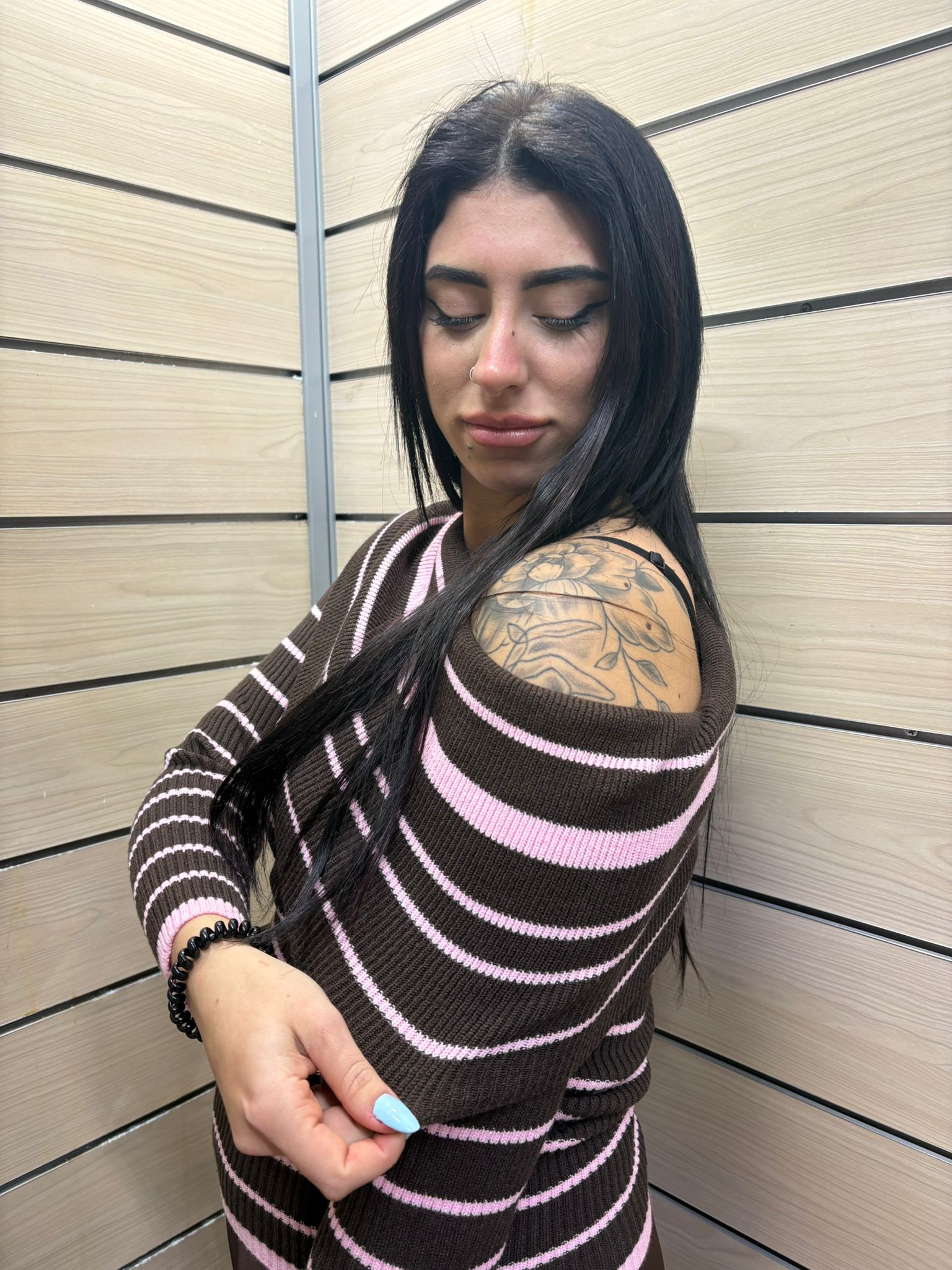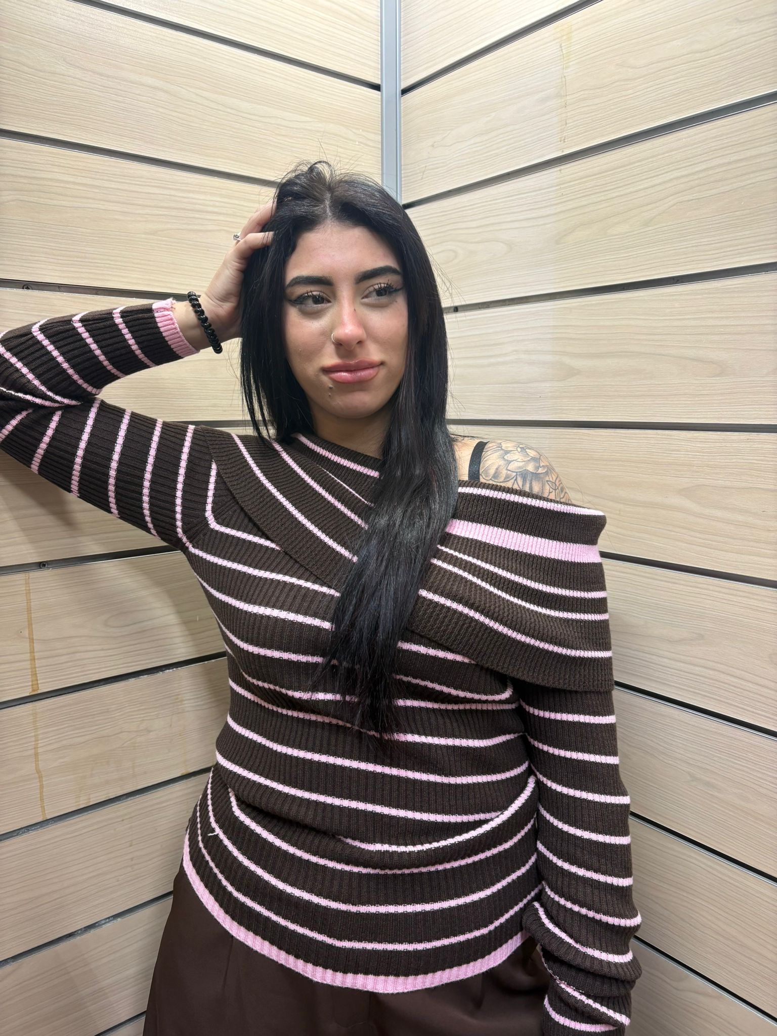 Maglia in Costine "Scollo Madonna" – Brown & Pink