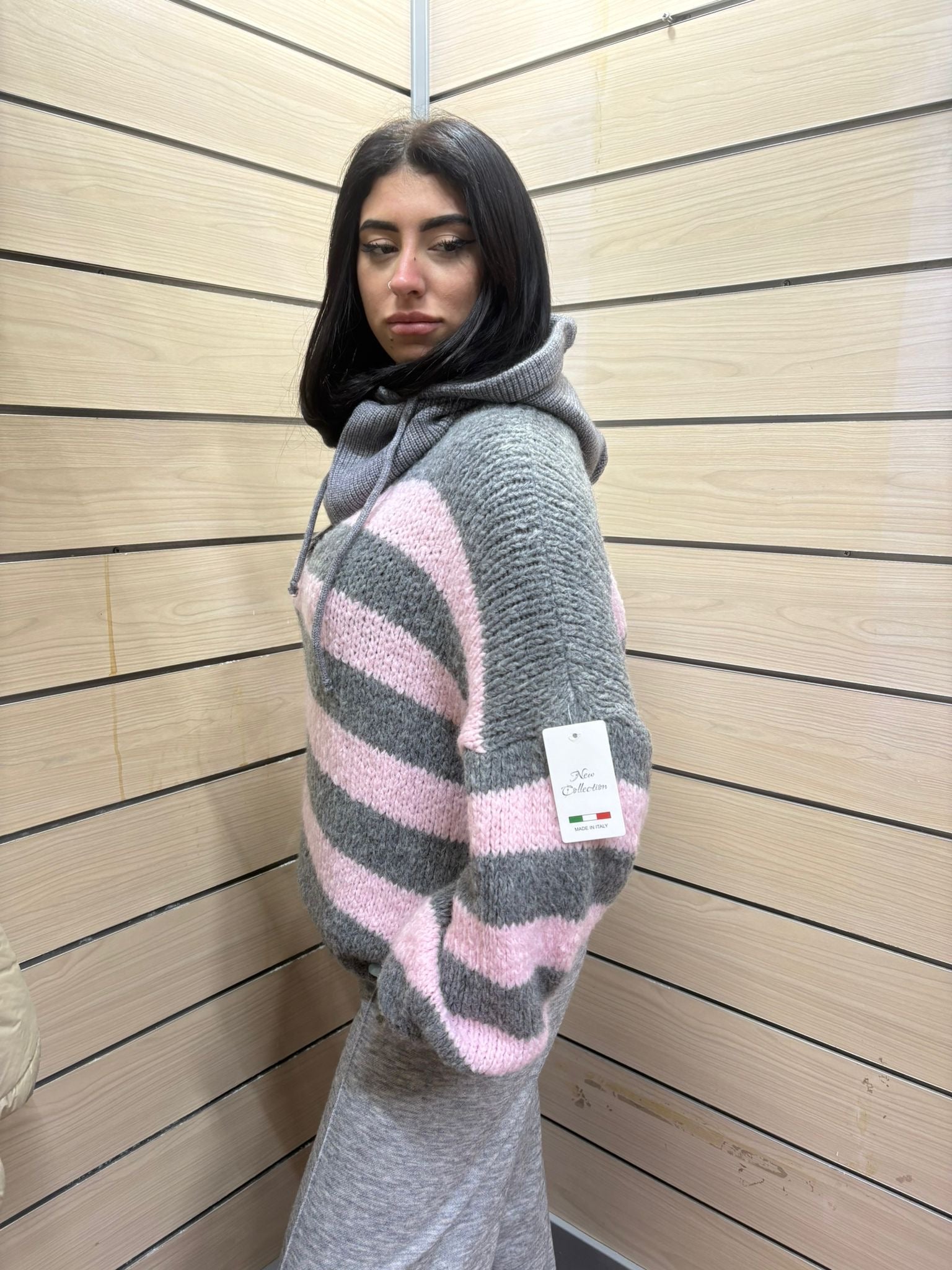 Maxi Pull a Righe con Cappuccio – Comfort & Style