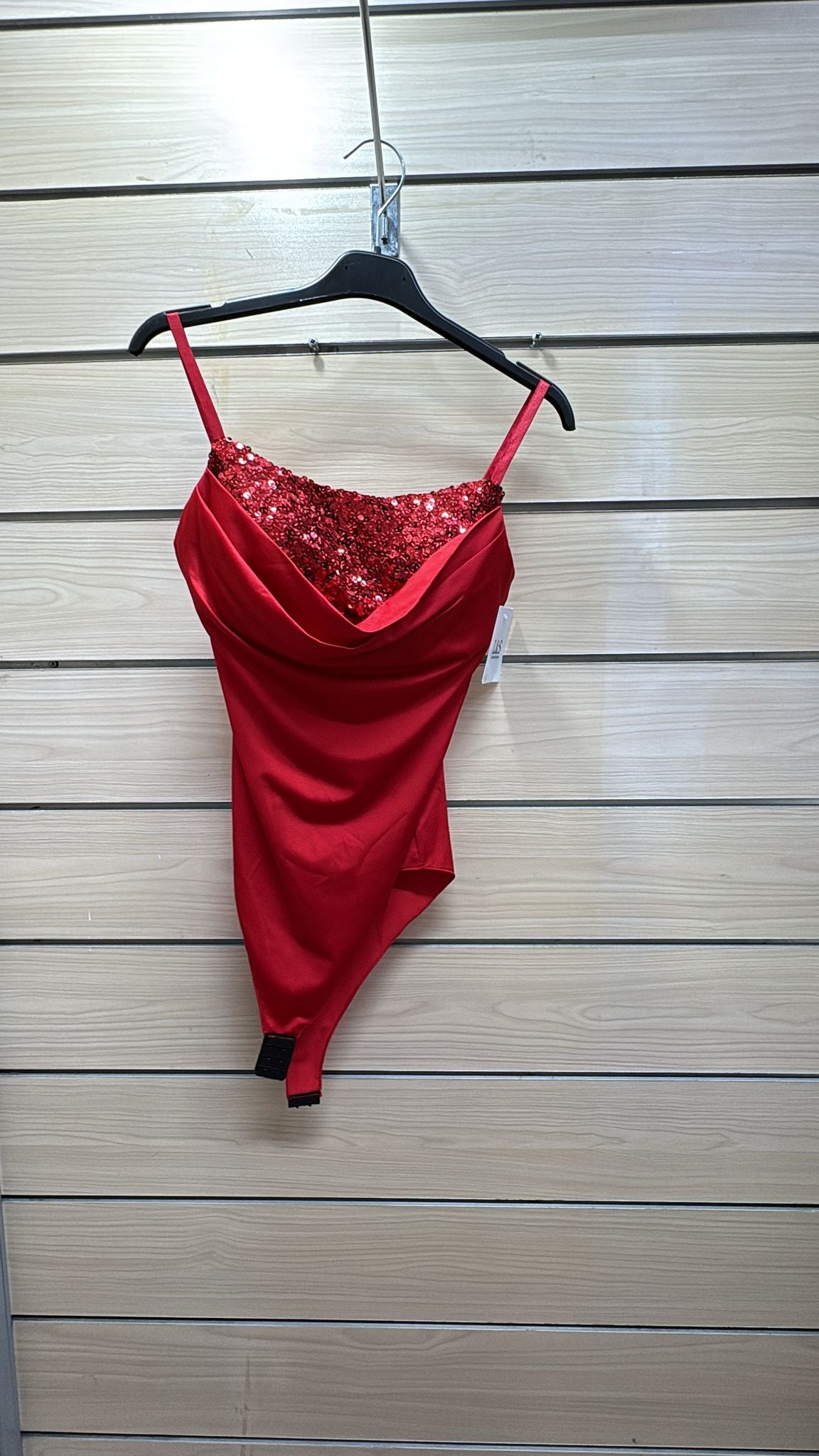 Aggiungi un tocco di luce e sensualità al tuo guardaroba con questo body versatile, perfetto per le serate speciali, eventi o per un look da club ricercato. Un capo che unisce il glamour dei paillettes alla raffinatezza del tessuto satinato.