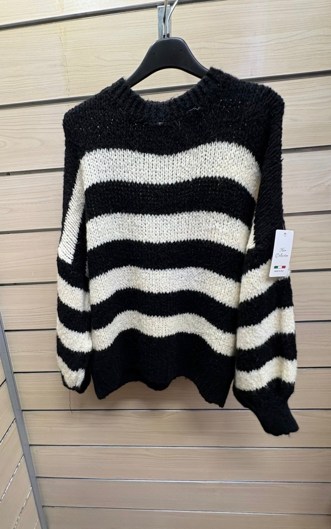 Riscopri il piacere di un caldo abbraccio con il nostro maglione a righe in morbida maglia, l’alleato perfetto per affrontare con stile le giornate più fredde. Questo capo unisce un'estetica classica a un taglio contemporaneo, diventando un elemento essenziale e versatile per ogni guardaroba invernale.